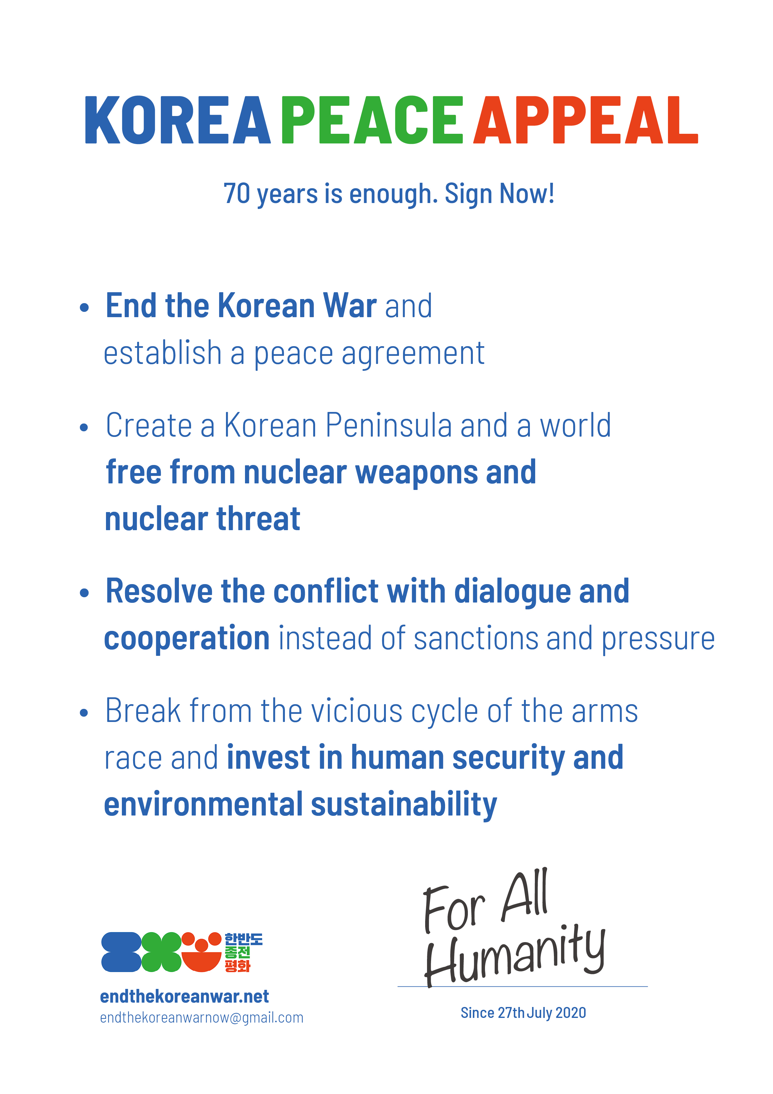 On 7 March 2023, Korea Peace Appeal held a press conference and issued a joint statement. The joint statement was proposed by the <Korea Peace Appeal Campaign>, <Korea Peace Now Grassroots Network>, <Peace Treaty Now> and was endorsed by 745 South Korean organizations and 99 US and international civil society organizations. The statement was also delivered to the Office of the South Korean President and the US Embassy in Seoul.