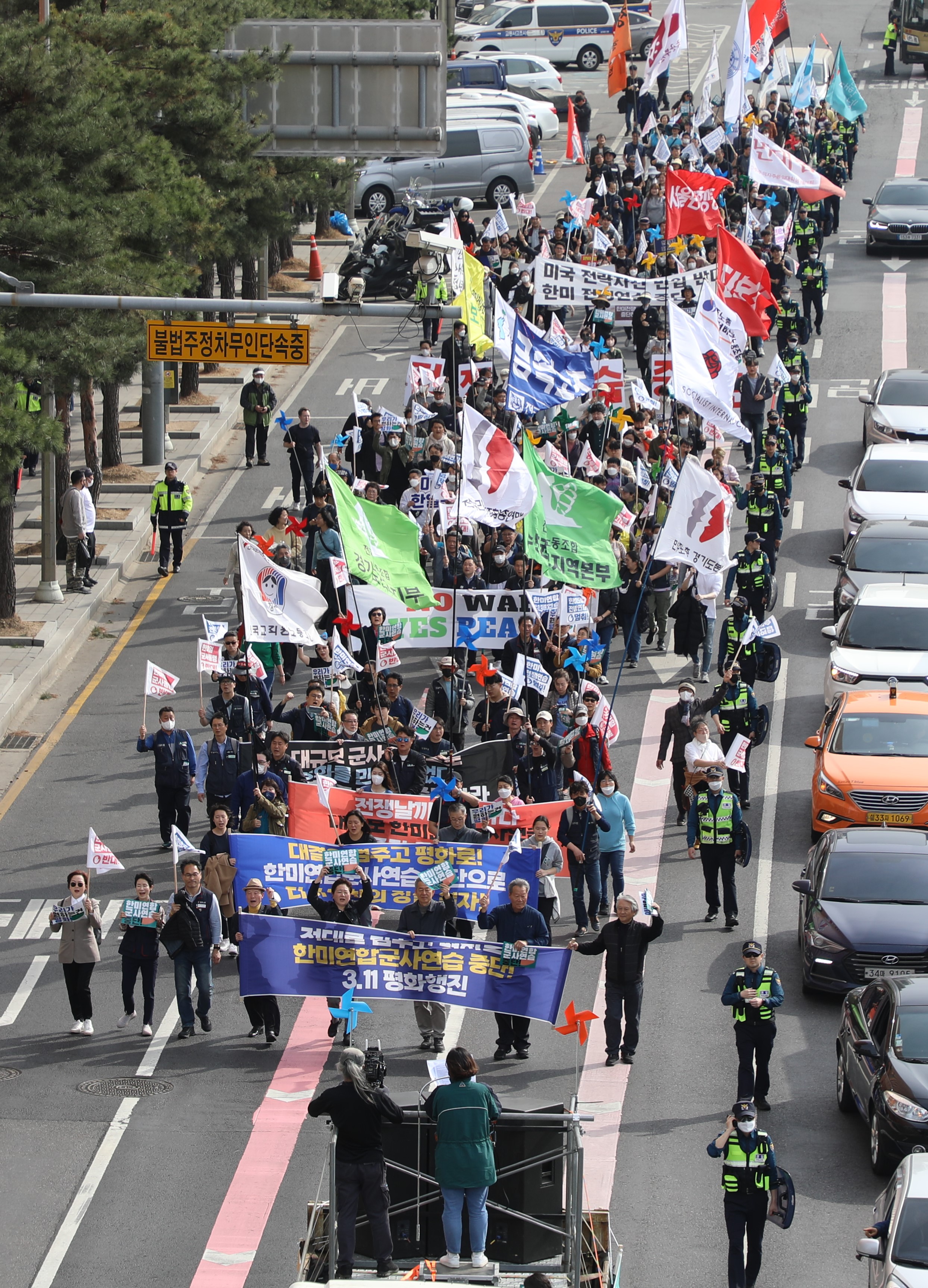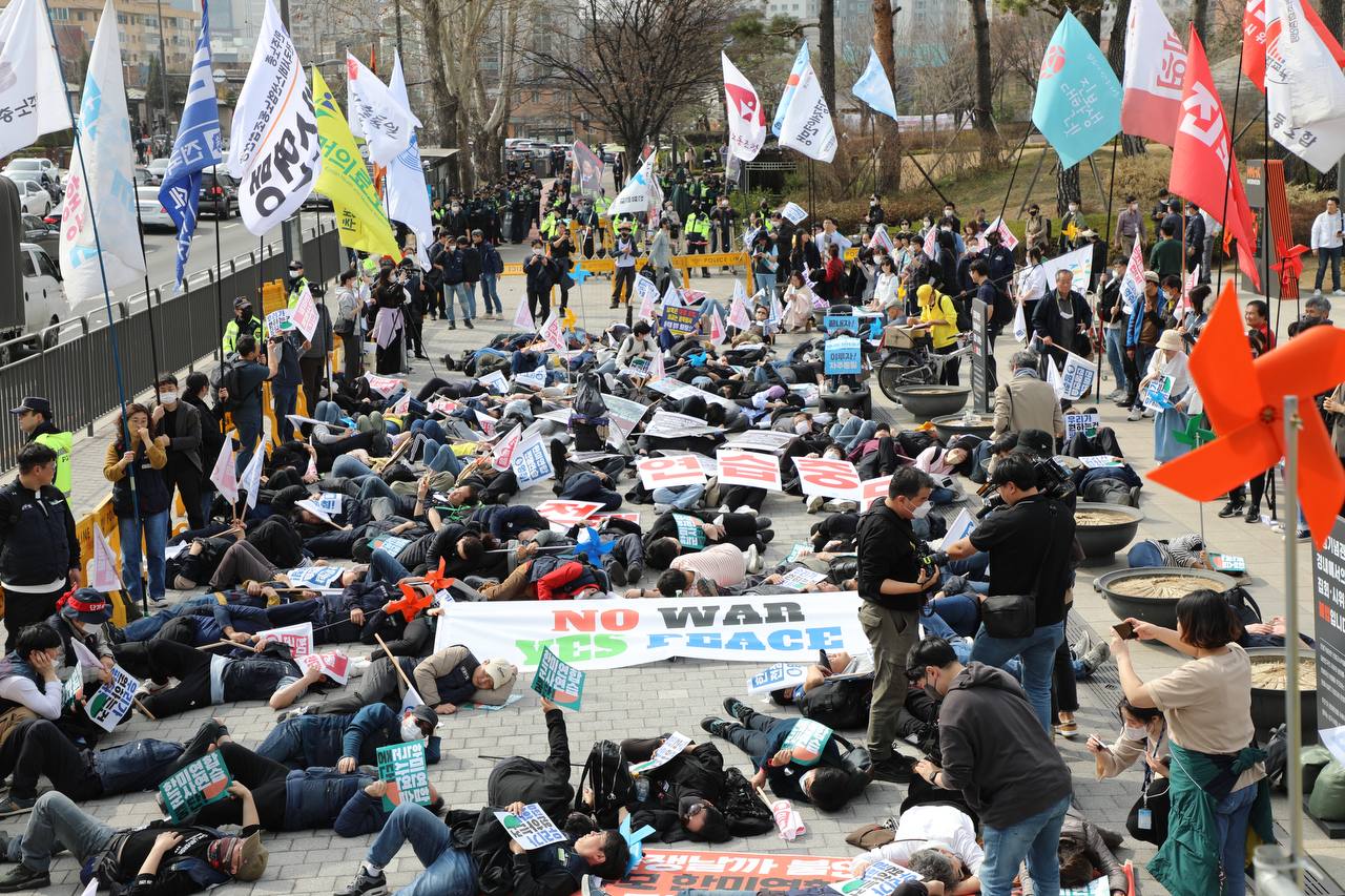 "Today, the entire world, including the Korean Peninsula, is facing complex crises such as climate, infectious disease, food, and economic crises. We cannot solve these crises unless we cooperate and stop blocization and military confrontations. In particular, the reality is that there is no information or controls on the carbon emitted during large-scale military training and war preparations, such as deploying strategic bombers. Military drills threaten the Earth and human beings, and they must stop."